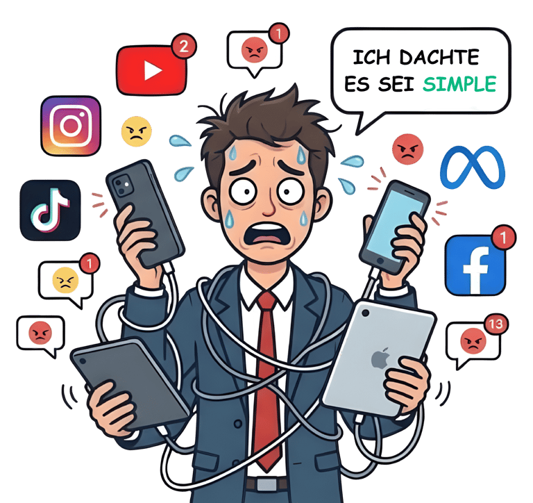 Die Zeitfalle Sie wissen, dass Ihr Unternehmen auf Social Media präsent sein müsste. Aber das operative Tagesgeschäft lässt keine Zeit für regelmässige Posts, Reels oder Community-Pflege.